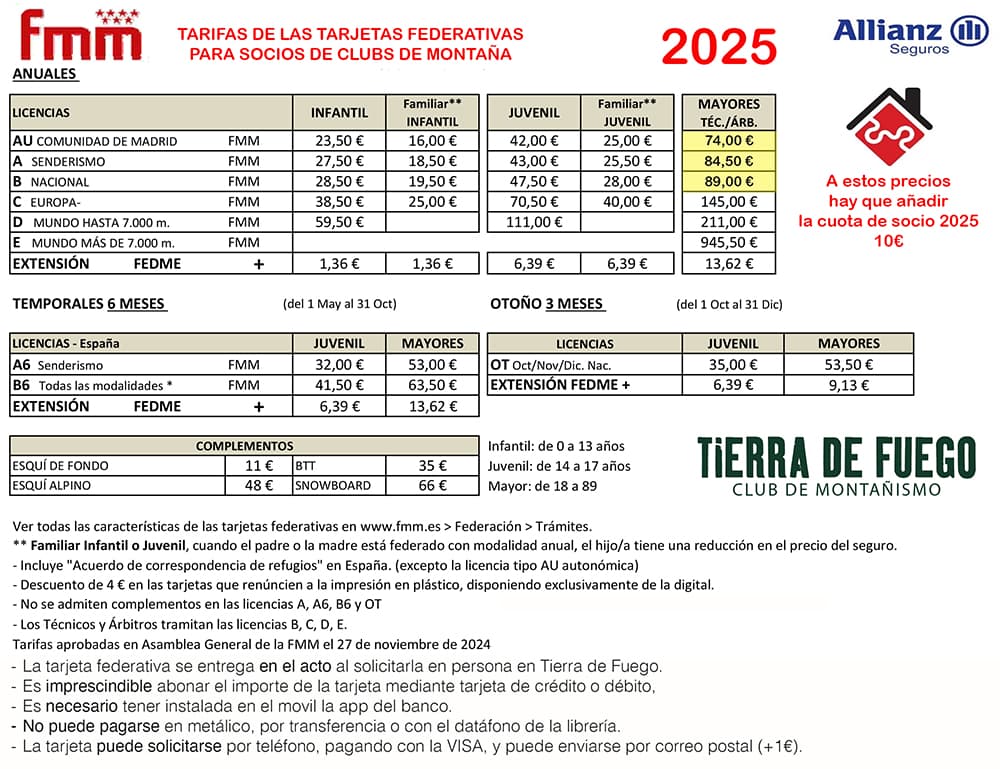 Desde el lunes, 9 de diciembre 2024 se puede solicitar la licencia federativa del 2025 de la Federación Madrileña de Montañismo.
